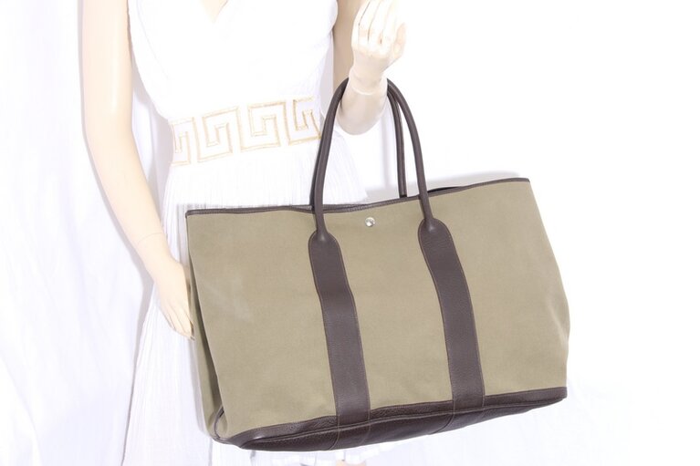 Hermès Garden Party Grand Khaki/Braun Canvas Leder