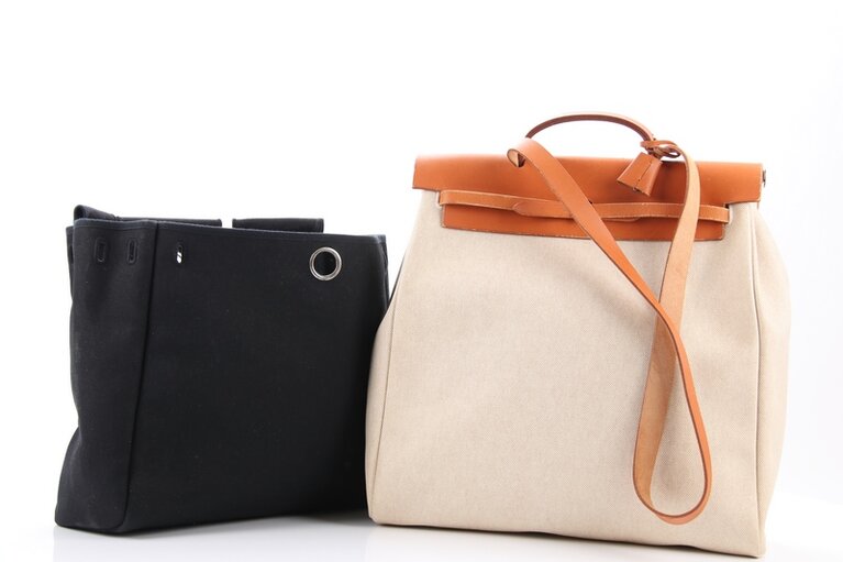Hermès Herbag Two Way Bag Beige, Schwarz, Braun MM Canvas Leder