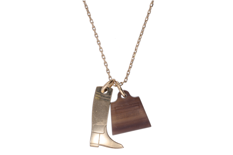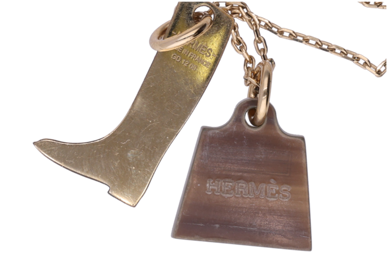 Hermès Kelly Halskette Stiefel und Kelly Horn Braun Goldfarben 50cm