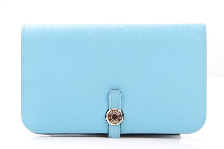 Hermès Portemonnaie Dogon Duo Blau Kalbsleder