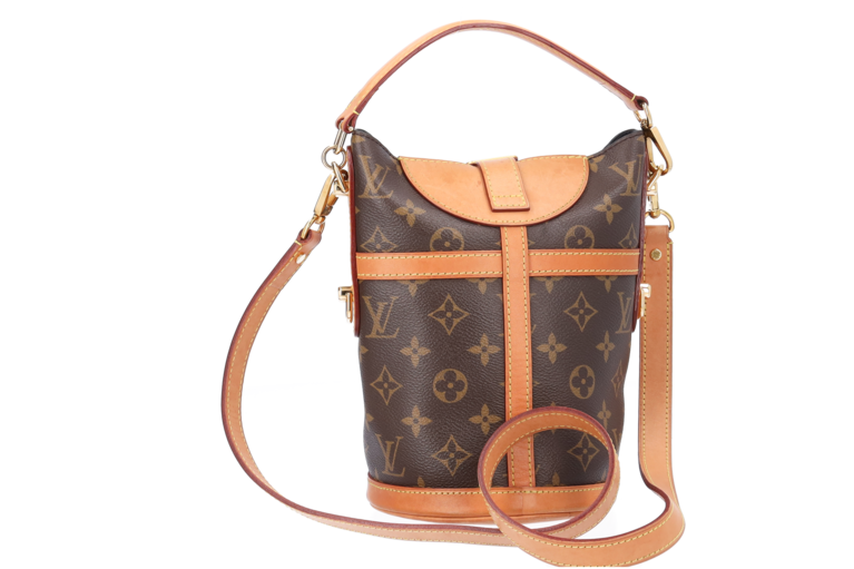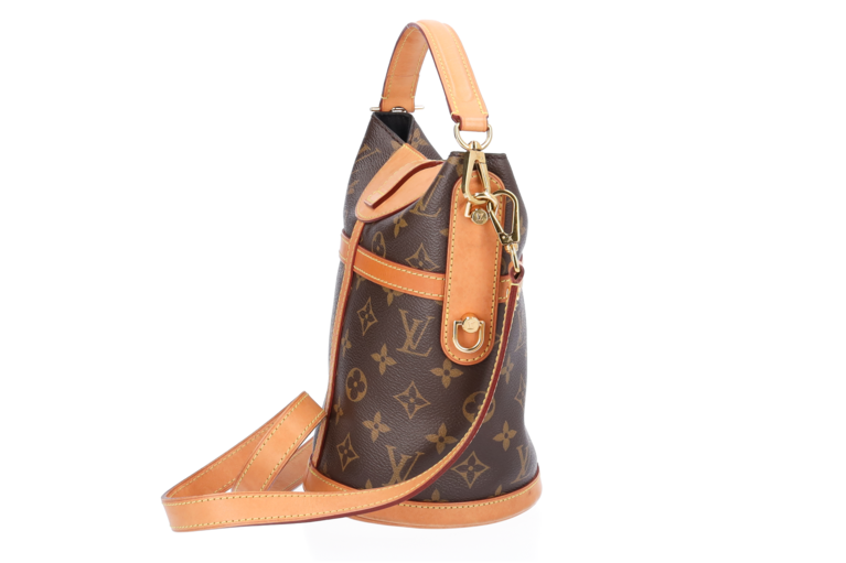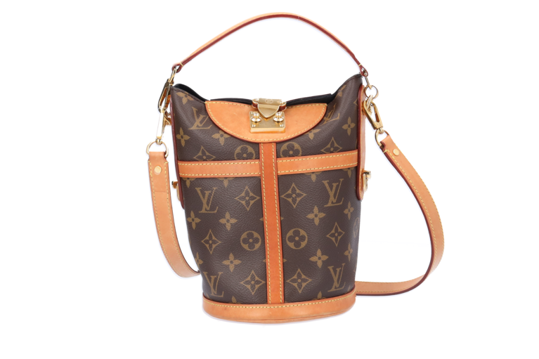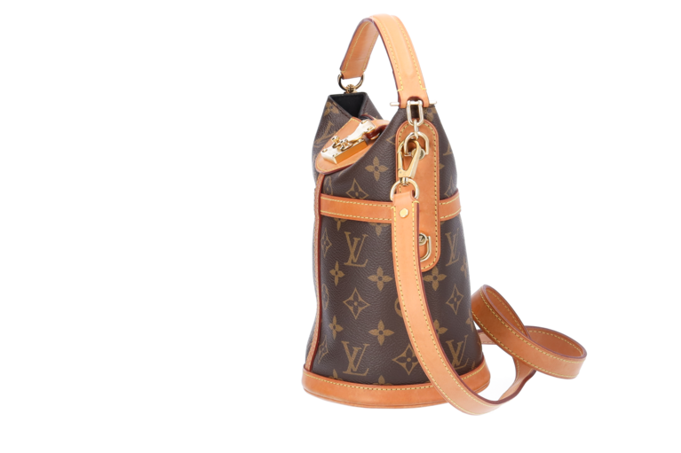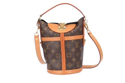 Die von Nicolas Ghesquière als Duffle neu interpretierte Eimerform stand ganz oben auf der Liste der „It-Bags“ für SS 18. Gefertigt aus geschmeidigem Monogram-Canvas mit einem fein gearbeiteten, charakteristischen S-Verschluss, ist sie eine stilvolle Option für den Alltag und den Abend. in der Hand oder über der Schulter getragen.