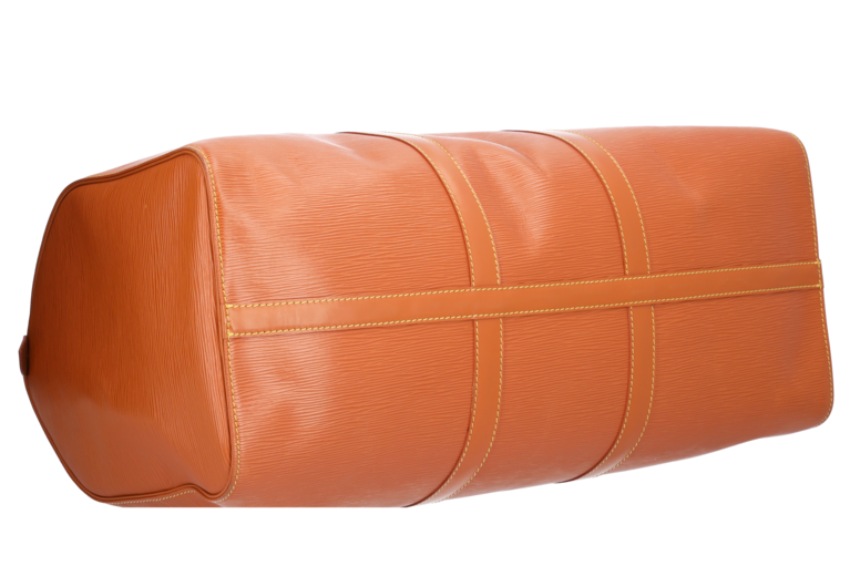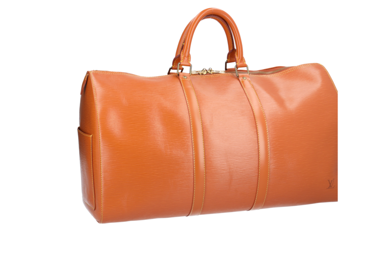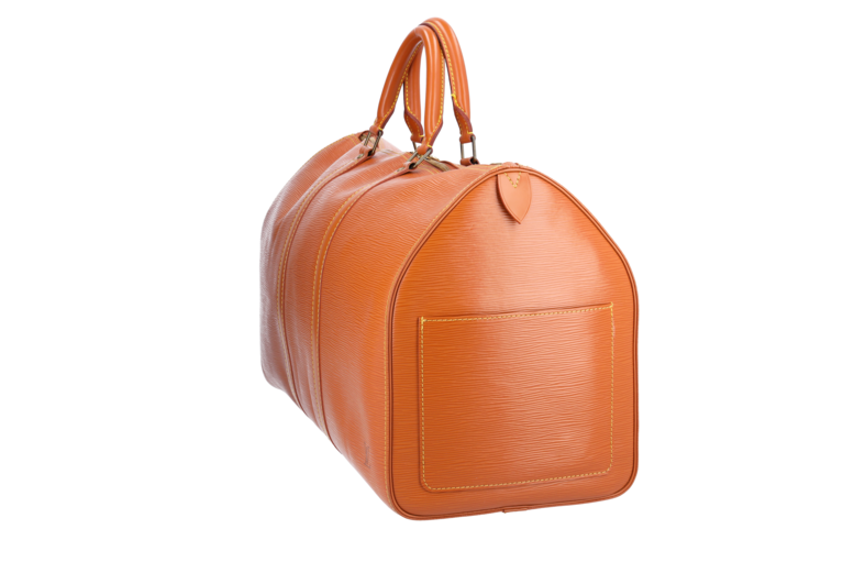 Die Keepall ist ein Klassiker der Louis Vuitton Reisetaschenkollektion, sie gilt seit der Einführung im Jahre 1930 als Icon des Hauses. Wegen ihrer robusten Oberfläche ist die vorliegende Neuinterpretation in Epi Leder besonders als Sporttasche oder zum understatement Reisen geeignet.