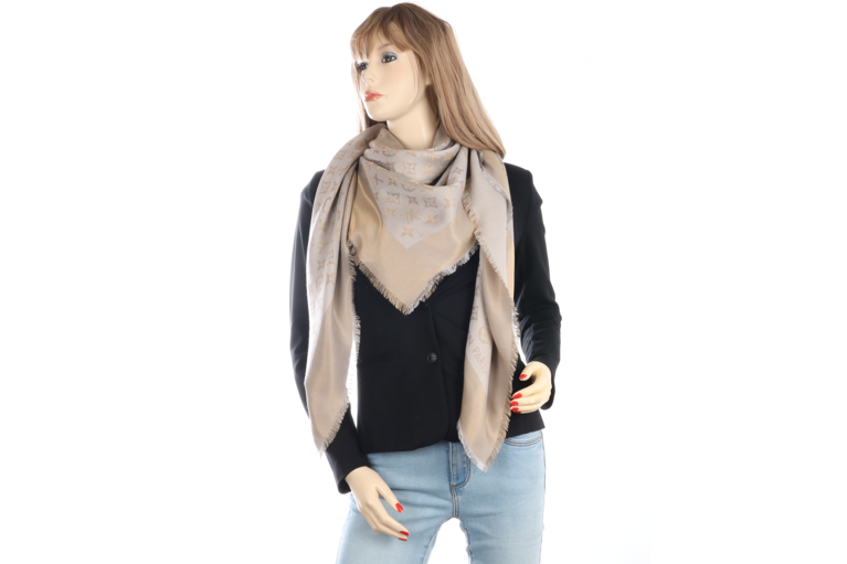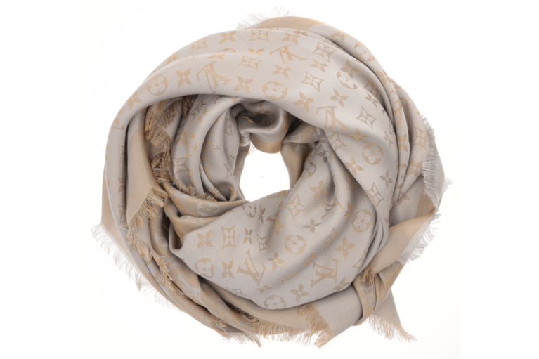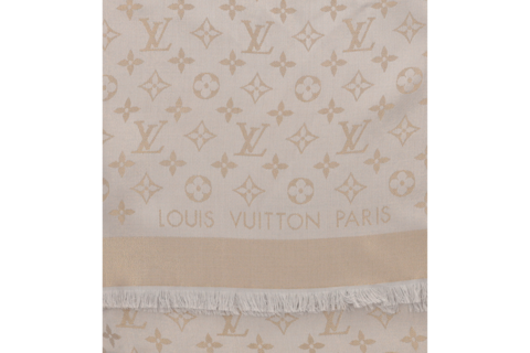 Louis Vuitton Monogram Tuch Shine Beige-Grau Seide Wolle M75121