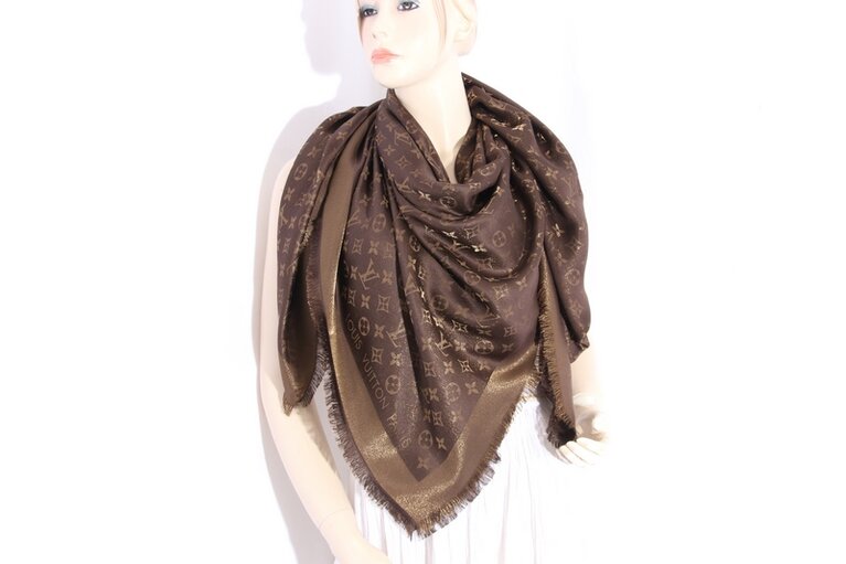 Louis Vuitton Monogram Tuch Shine Greige Seide Wolle M75122