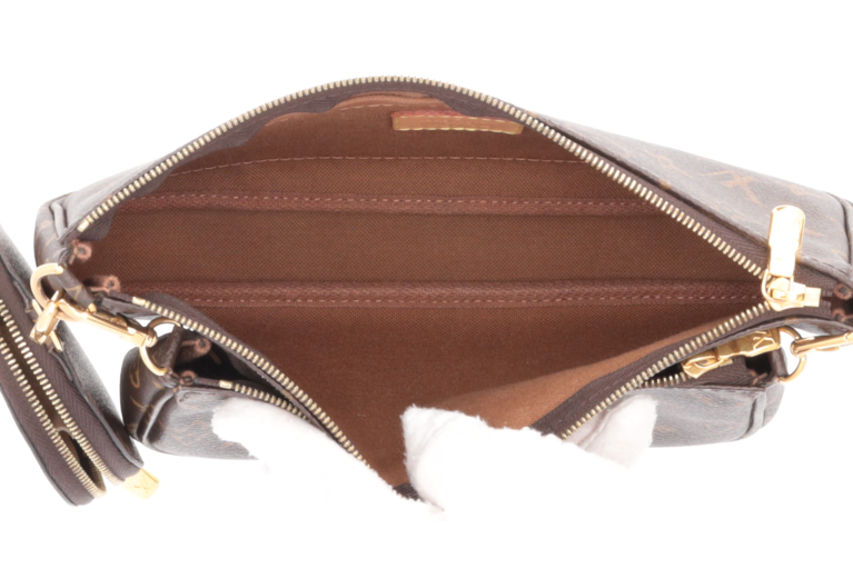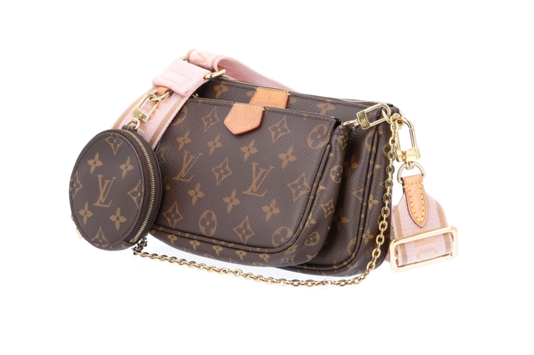 Die Multi Pochette Accessoires ist eine vielseitige Schultertasche mit mehreren Fächern und Innenfächern, die eine Pochette Accessoires, eine Mini Pochette Accessoires und eine Round Coin Geldbörse in sich vereint. Das Modell in Monogram Canvas zeigt sich mit einer Miniaturausgabe des Monogram-Motivs an den Seiten der beiden Pochettes. Es bietet sowohl mit der abnehmbaren, goldfarbenen Kette als auch mit dem verstellbaren Schulterriemen aus Jacquardgewebe samt Louis Vuitton Schriftzug mehrere Tragemöglichkeiten.