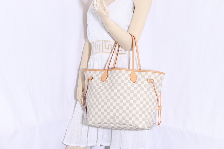 Louis Vuitton Neverfull MM Damier Azur Canvas innen Rose Ballerine ohne Pochette N41605