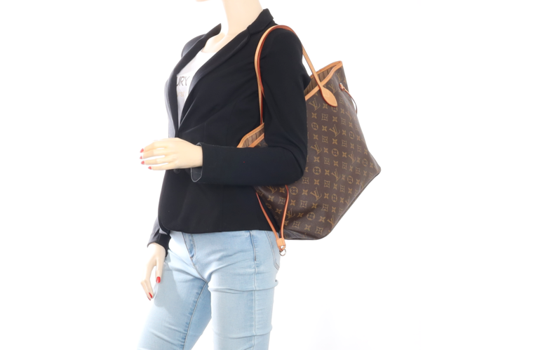 Die Neverfull aus Monogram Canvas stellt eine der Kulttaschen des Hauses Louis Vuittons dar. Sie ist im Retrolook gehalten und innen mit einem Aufnäher ausgestattet, der an die frühen Reiseartikel Louis Vuittons erinnert.