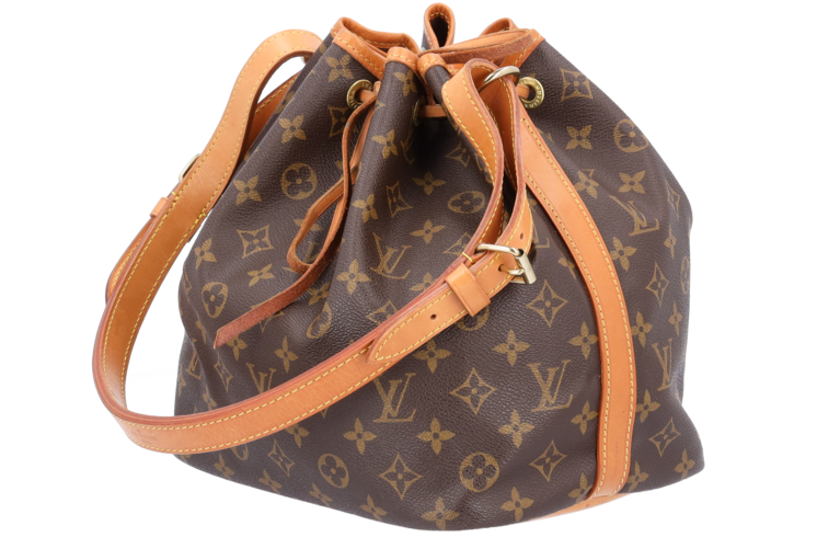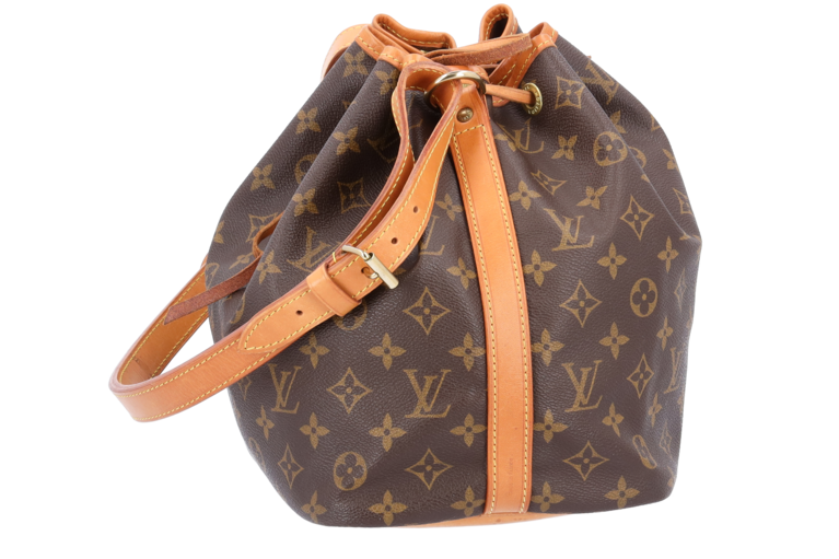 Die Petit Noé in Monogram Canvas ist eine Interpretation der berühmten, 1932 kreierten Champagnertasche im kleineren Format. Mit ihrem verstellbaren Schulterriemen wird sie über der Schulter getragen.