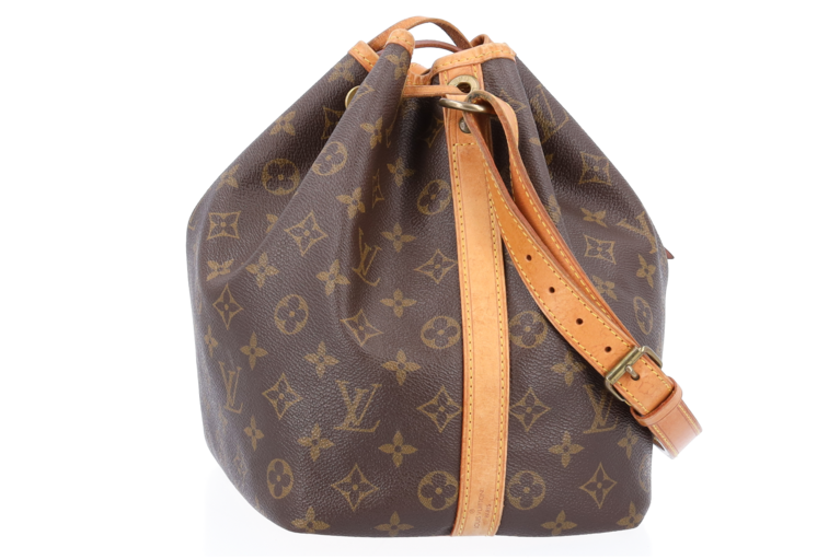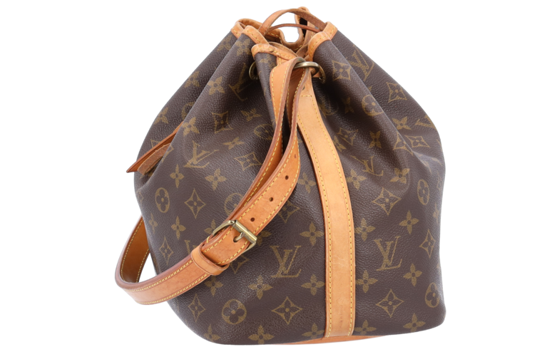 Die Petit Noé in Monogram Canvas ist eine Interpretation der berühmten, 1932 kreierten Champagnertasche im kleineren Format. Mit ihrem verstellbaren Schulterriemen wird sie über der Schulter getragen.