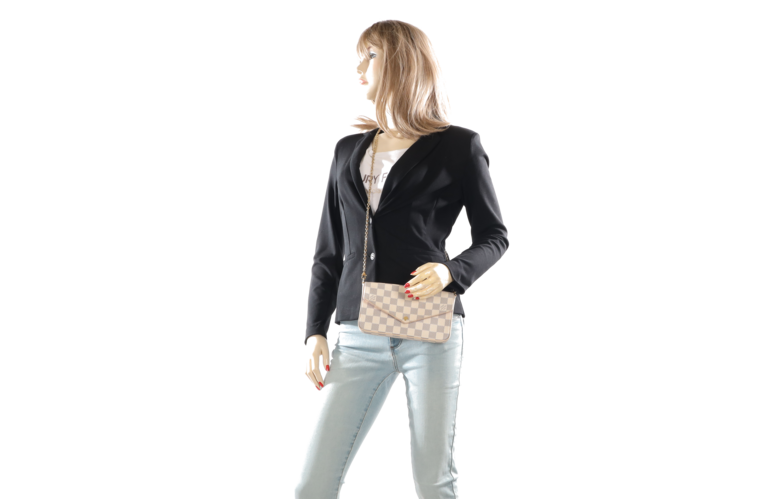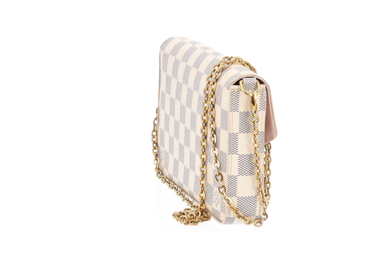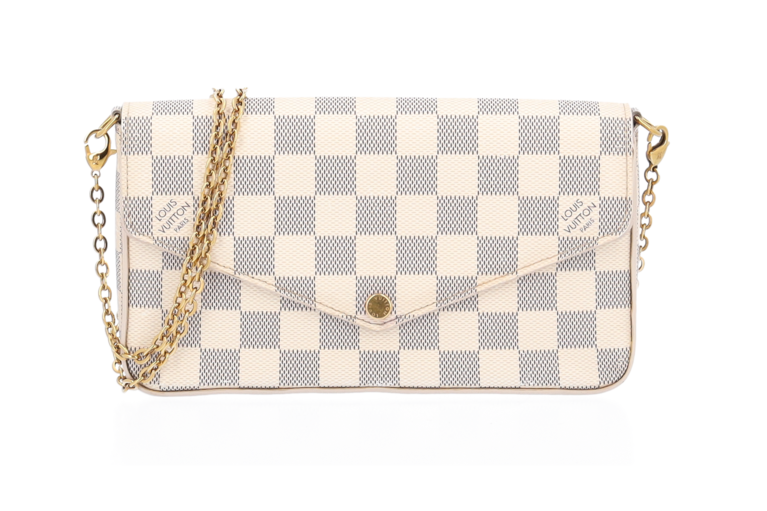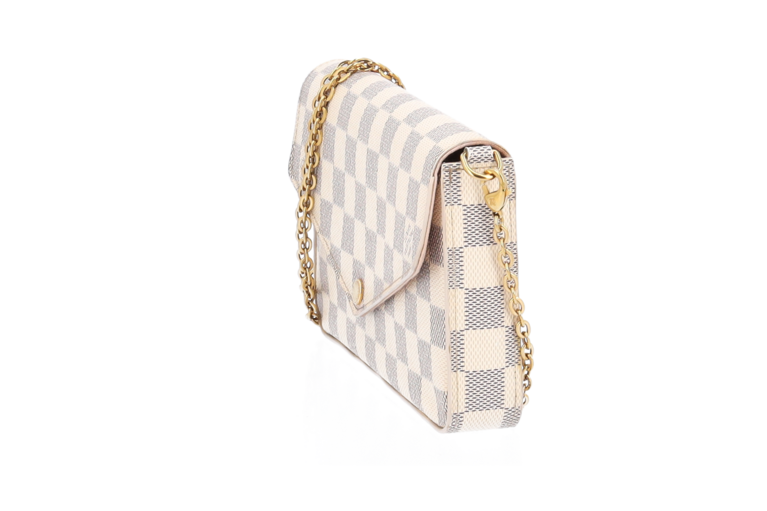 Die Pochette Félicie in Damier Azur ist mit dem sommerlichen Schachbrettmuster des Hauses Louis Vuitton geprägt. Das vielseitige Täschchen in Form eines Briefumschlags zeichnet sich durch zwei herausnehmbare Innenfächer aus. Mithilfe der abnehmbaren, goldfarbenen Kette kann das Modell entweder über der Schulter oder als Clutch in der Hand getragen werden.