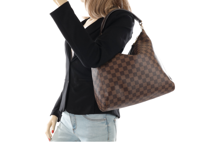 Ein besonders geschmeidiges Damier Canvas ziert die praktische, aber dennoch stilechte Portobello GM, sodass sie sich auf angenehme Weise der Form des Körpers anpasst. Die grosszügigen Abmessungen und der weiche abgerundete Griff aus Leder tragen zum Charme dieser Tasche bei.