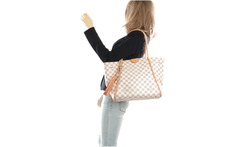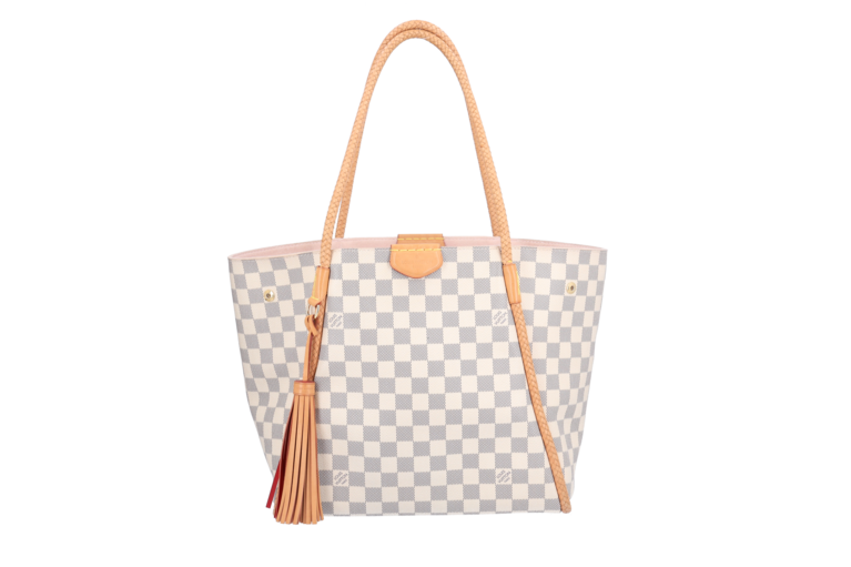 Raffinesse, Feminität und urbane Grösse wurden mit Propriano kombiniert. Das elegante Damier Azur kontrastiert mit filigran geflochtenen Lederbesätzen und dem rosafarbenen Innenmaterial. Propriano wird über der Schulter getragen und ist der perfekte Shopper für die City oder den Strand.