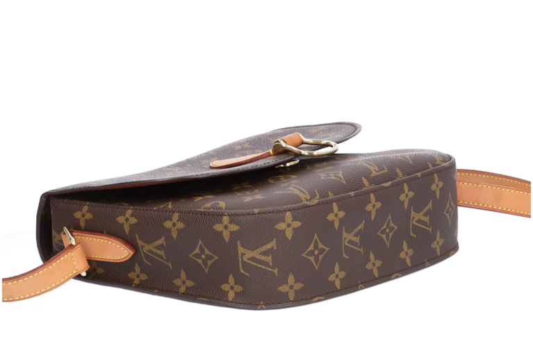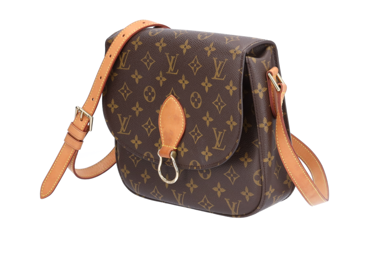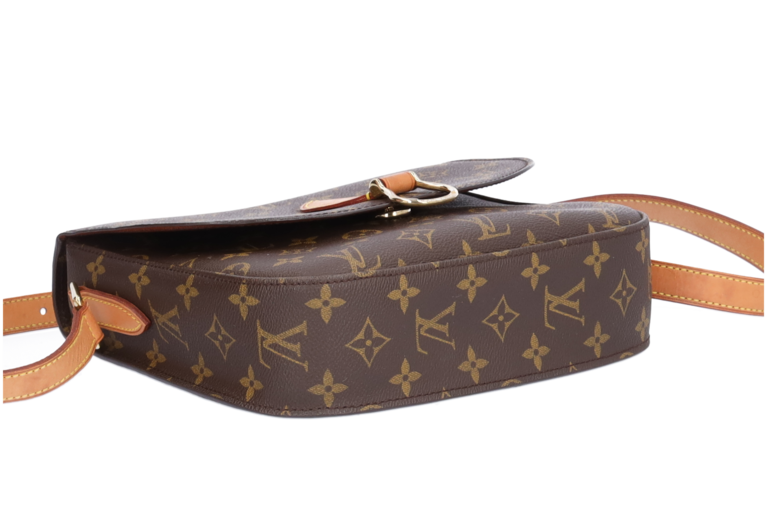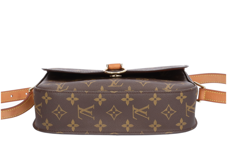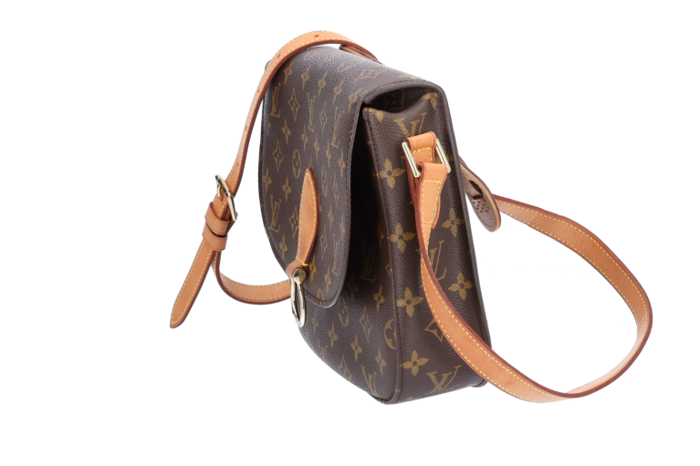 Material aussen: Monogram Canvas, verstellbarer Schulterriemen. goldfabrbene Beschläge. Flaches Aussenfach hinten, Druckknopf Verschluss, Lederbesätze in unbehandeltem Rindsleder.