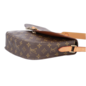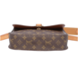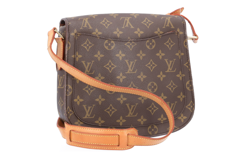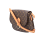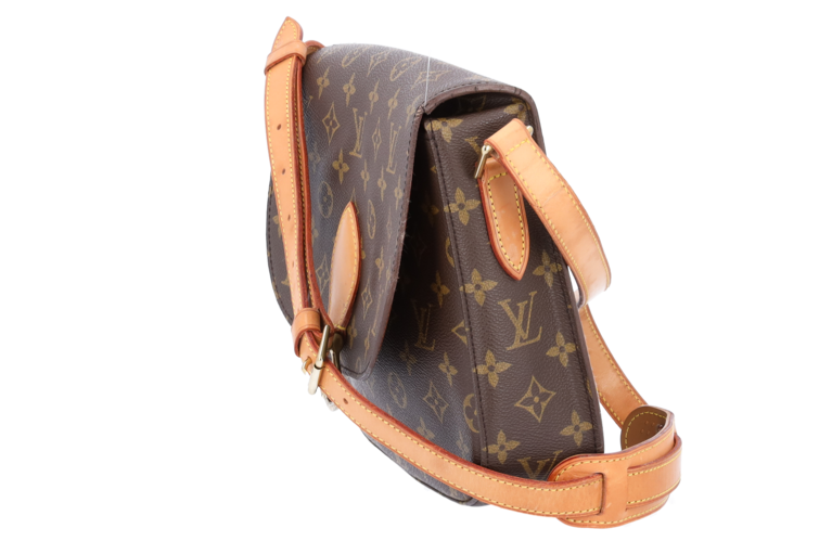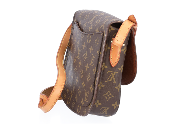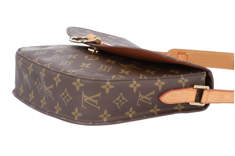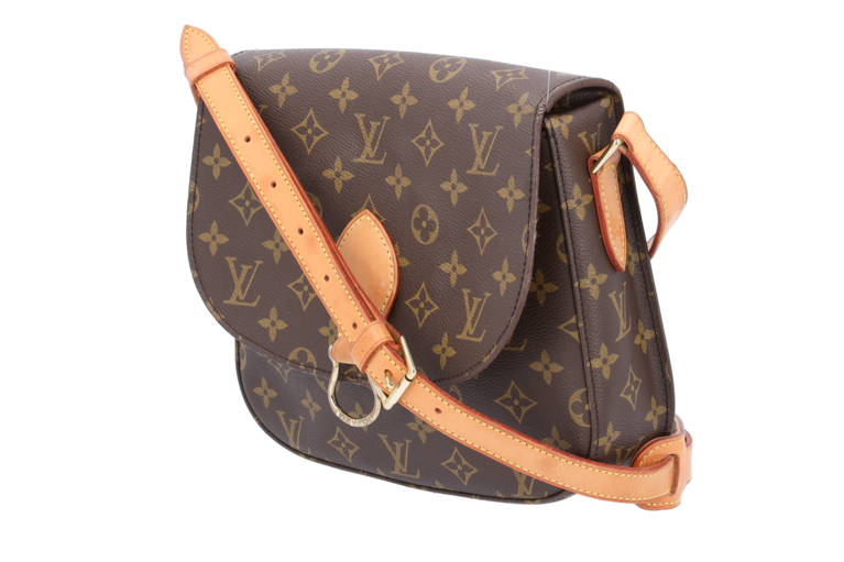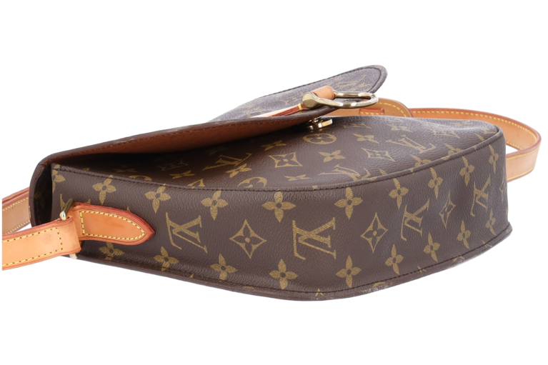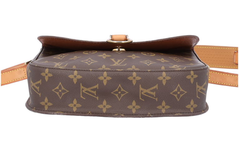 Material aussen: Monogram Canvas, verstellbarer Schulterriemen. goldfabrbene Beschläge. Flaches Aussenfach hinten, Druckknopf Verschluss, Lederbesätze in unbehandeltem Rindsleder.