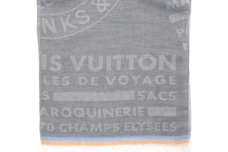 Louis Vuitton Schal Articles de Voyage Grau Kaschmir Wolle M78605
