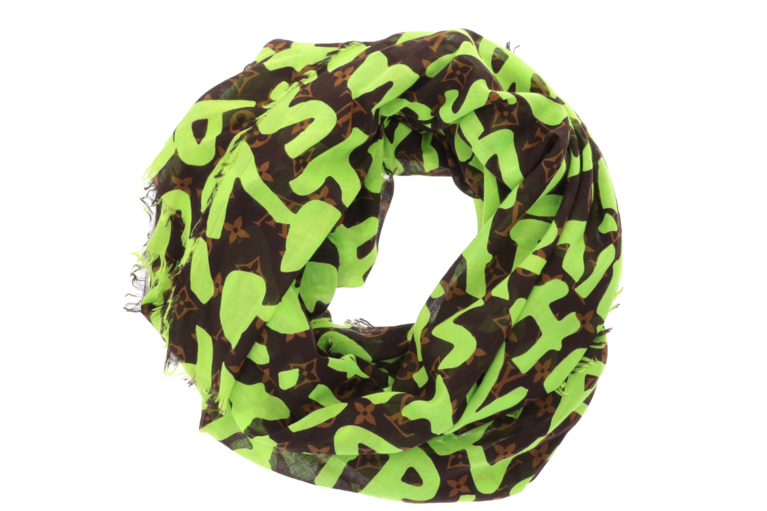 Dieser Louis Vuitton Schal in Braun mit auffälligen Neon-Grün-Graffiti ist ein ikonisches Statement-Accessoire aus einer der kreativsten Phasen des Hauses. Die Kombination aus klassischem Grundton und provokantem Graffiti-Schriftzug verleiht der Stola eine moderne, urbane Ausstrahlung mit starkem Wiedererkennungswert. Gefertigt aus reiner Baumwolle, fühlt sich der Schal angenehm weich an und eignet sich ideal für jede Jahreszeit – als leichter Begleiter an kühlen Abenden oder als modischer Akzent über Mantel, Blazer oder Lederjacke.