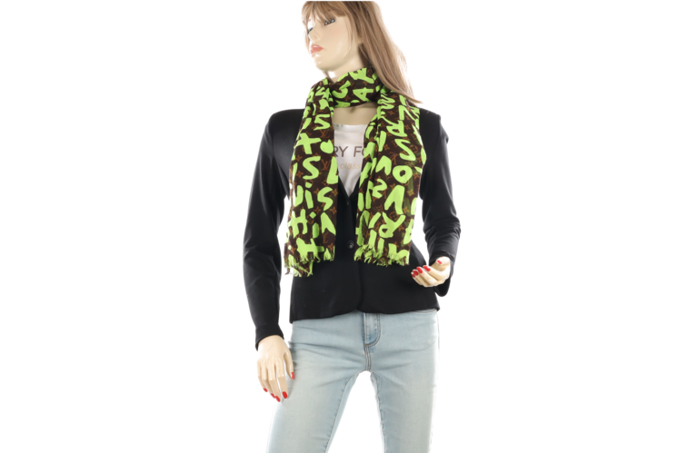 Louis Vuitton Schal Stola Graffiti Braun Neon Grün Baumwolle 140cm x 65cm