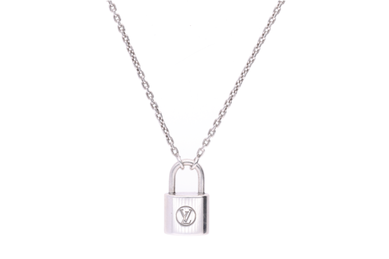 Louis Vuitton Silver Lock it Halskette Schloss Silber 925 Q93559