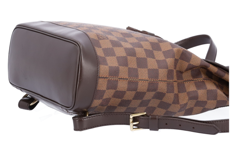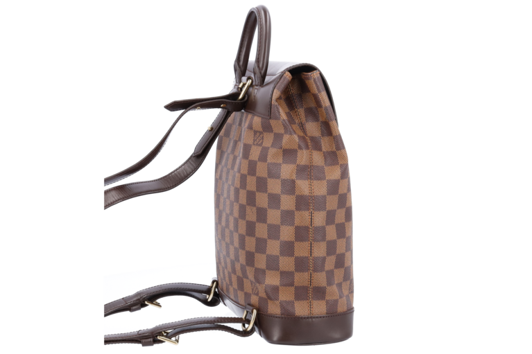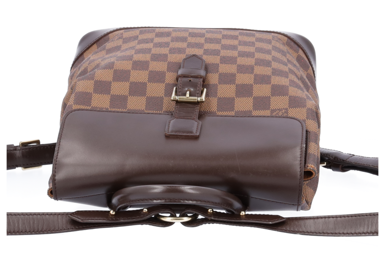 Rucksack aus dem haus Louis Vuitton aus Damier Ebene Canvas mit dunkelbraunen Lederteilen.