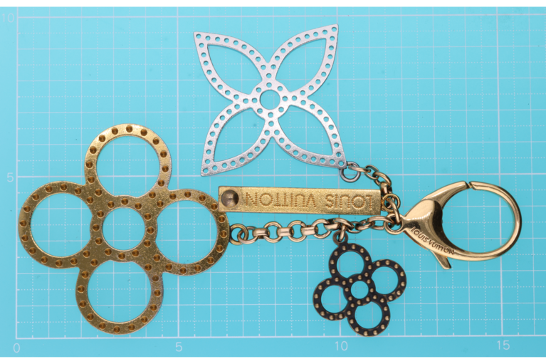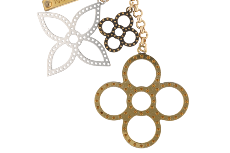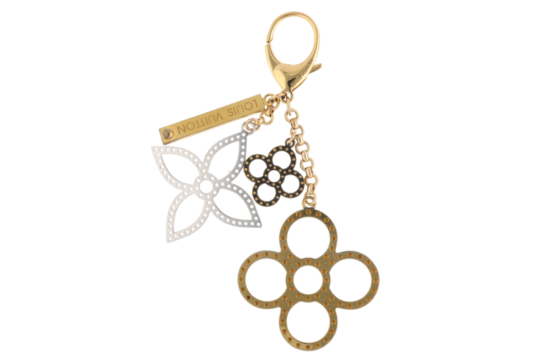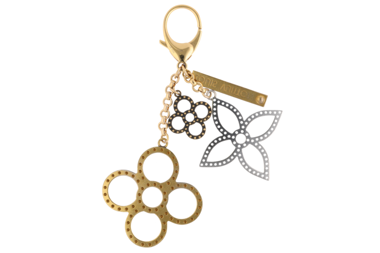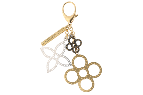 Dieser stilvolle Anhänger für die Tasche wurde vom perforierten Mahina-Leder inspiriert und spielt mit Monogram-Blüten in verschiedenen Ausführungen.