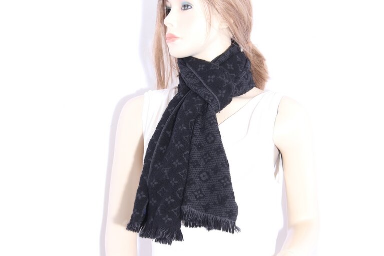 Louis Vuitton Unisex Monogram Classic Schal Schwarz Wolle M70520