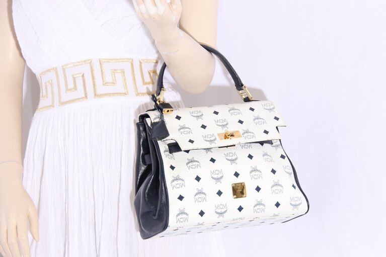 MCM Handtasche Signature Weiss Canvas