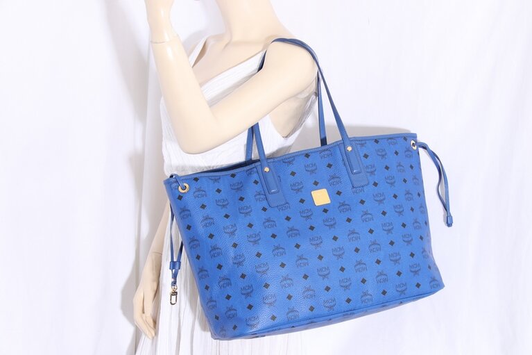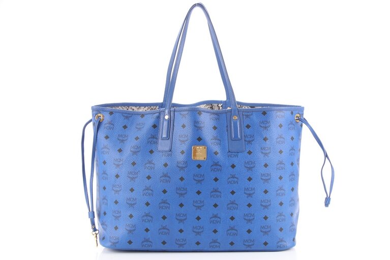 MCM Shopper Gross Reverse Heritage Blau Canvas innen Reptilienmuster