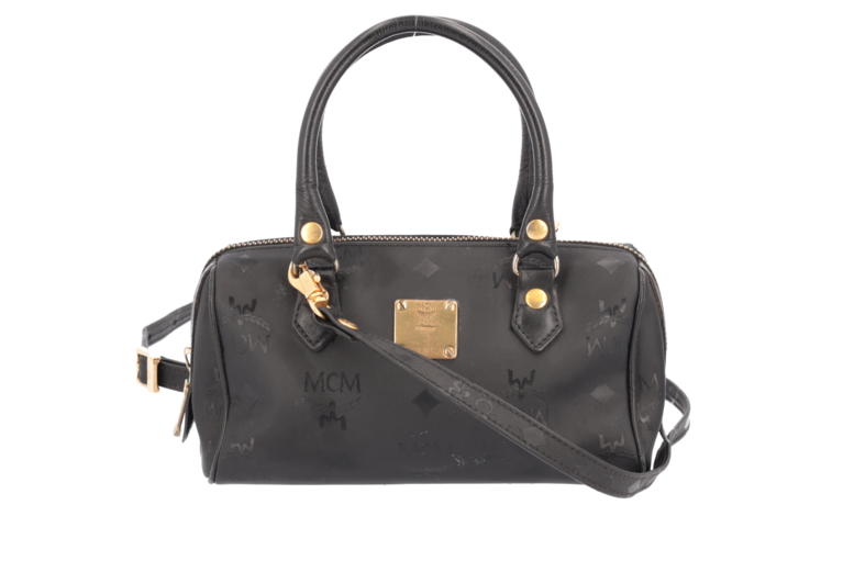 MCM Speedy Bostonbag Mini Vinyl Schwarz mit Schulterriemen