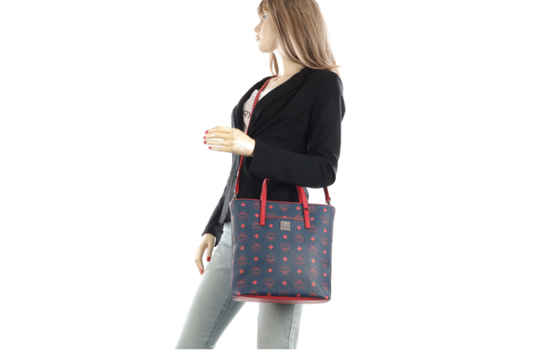 MCM Two Way Tasche Blau Rot Leder
