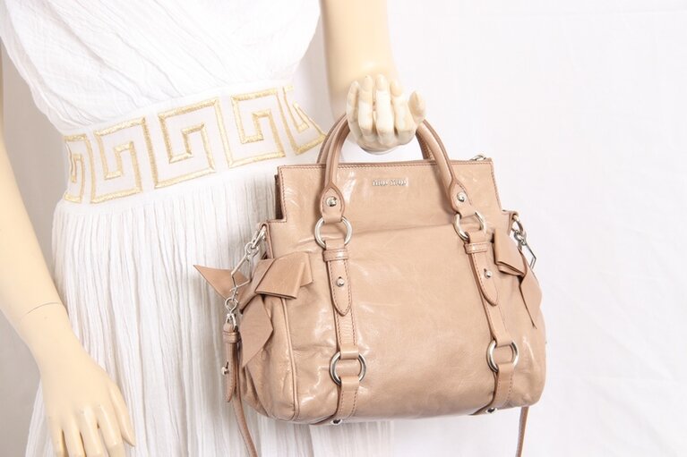 Miu Miu Two Way Mini Bow-Bag Beige Glattleder