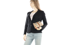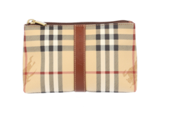 Burberry Kosmetiktasche Schwarz Beige Check Canvas Braun Leder