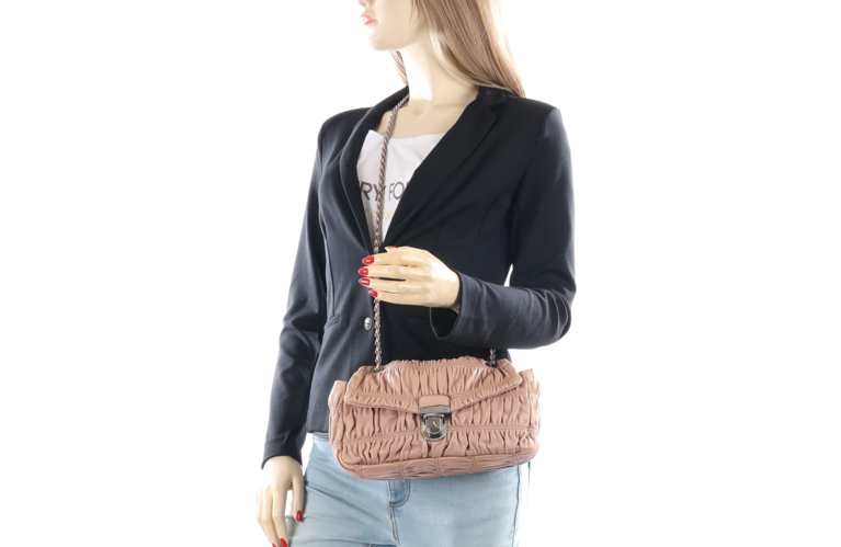 Prada Rosa Plisée Schultertasche Cameo Leder BR4553