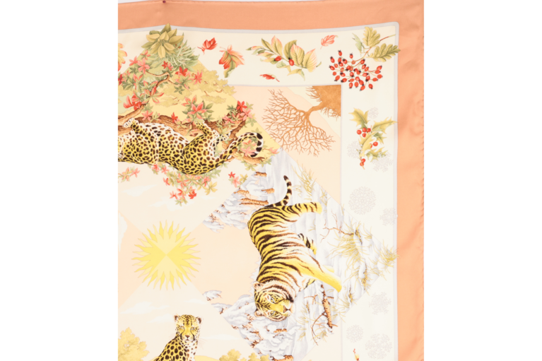 Dieses edle Carré von Salvatore Ferragamo vereint luxuriöse Seide mit einem ausdrucksstarken Leopardenmotiv in einer warmen Apricot Nuance. Das grosszügige Format von 90 x 90 cm eröffnet vielseitige Stylingmöglichkeiten – ob klassisch um den Hals, lässig im Haar oder elegant an der Tasche getragen. Die feine Seidenqualität sorgt für einen fliessenden Fall und ein besonders angenehmes Tragegefühl. Ein stilvolles Accessoire, das jedem Outfit eine elegante und zugleich moderne Note verleiht.