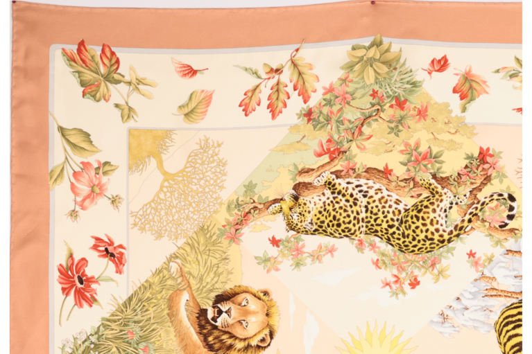 Salvatore Ferragamo Foulard Carré Tuch Apricot Leopard Seide 90cm x 90cm