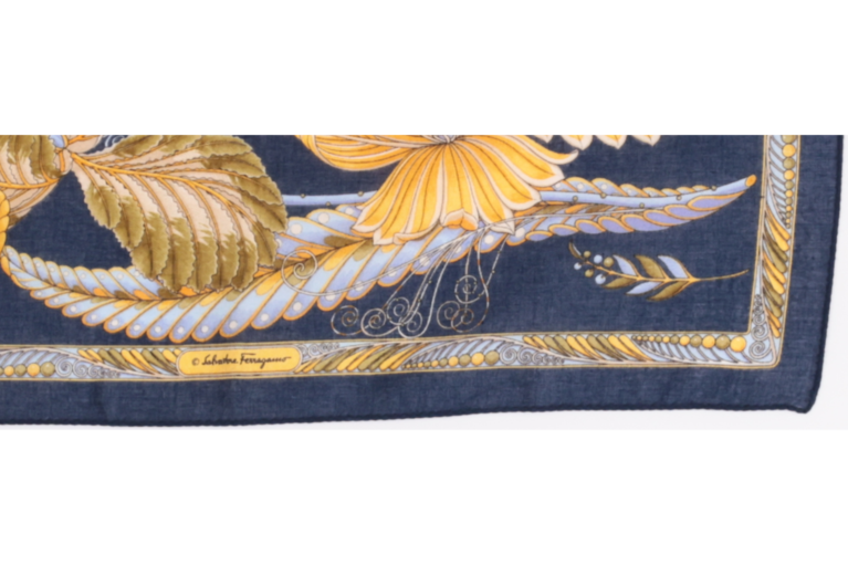 Salvatore Ferragamo Foulard Carré Tuch Blau Gelb Baumwolle 90cm x 90cm