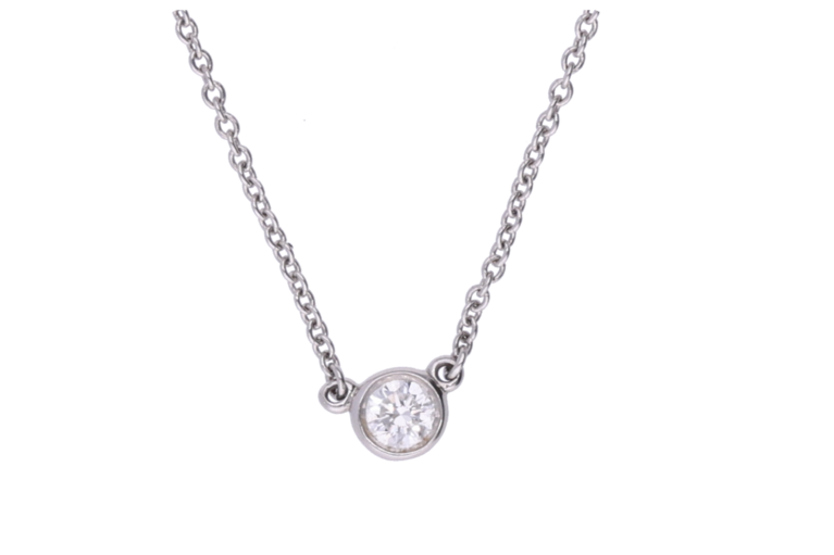 Eleganz in ihrer reinsten Form: Diese Tiffany & Co. Halskette aus edlem 950 Platin präsentiert einen strahlenden 0.17ct Brillanten. Entworfen von Elsa Peretti für die ikonische Diamonds by the Yard Kollektion, steht dieses Schmuckstück für zeitlose Raffinesse und feinste Verarbeitung. Ein stilvolles Accessoire für jeden Tag – oder einen besonderen Moment.