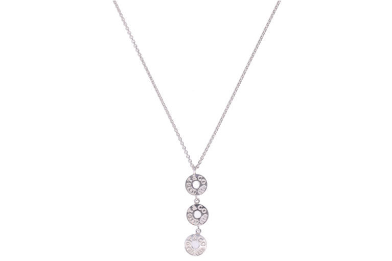 Die Tiffany & Co. Halskette mit drei ineinander verschlungenen Ringen aus 925er Sterlingsilber steht für Einheit, Balance und zeitlose Ästhetik.
