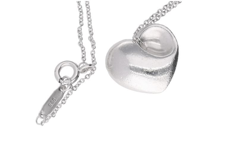 Diese elegante Halskette von Tiffany & Co. präsentiert sich mit einem klassischen Herzanhänger aus 925 Sterlingsilber – ein zeitloses Symbol für Liebe und Stil. Die feine Verarbeitung und das ikonische Design machen sie zu einem begehrten Schmuckstück.