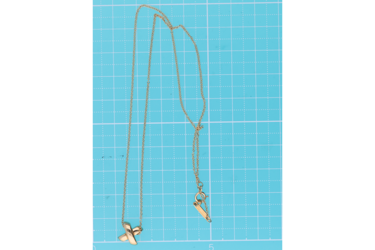 Die Tiffany & Co. Cross Stitch X Halskette aus 18 Karat Gelbgold interpretiert das klassische Kreuzstichmotiv stilvoll neu. Die filigrane Kette mit dem ikonischen "X"-Element verkörpert zeitlose Schlichtheit. Ein ausdrucksstarkes Schmuckstück für den Alltag oder besondere Anlässe.