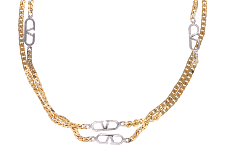 Valentino Halskette Goldfarben mit silberfarbbenem V Logo