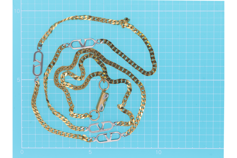 Elegante Valentino Halskette in Goldfarbe mit silberfarbenem V Logo. Das stilvolle Design verleiht jedem Outfit eine edle und feminine Note. Ein zeitloses Schmuckstück, das sowohl im Alltag als auch zu besonderen Anlässen glänzt.